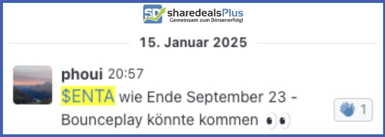 Sharedealer(innen) haben sogleich fleißig Gewinne mitgenommen. Trotz dieser Kursexplosion sollten Anleger nicht vergessen, dass $ENTA im Jahresvergleich immer noch Aufholpotenzial hat.