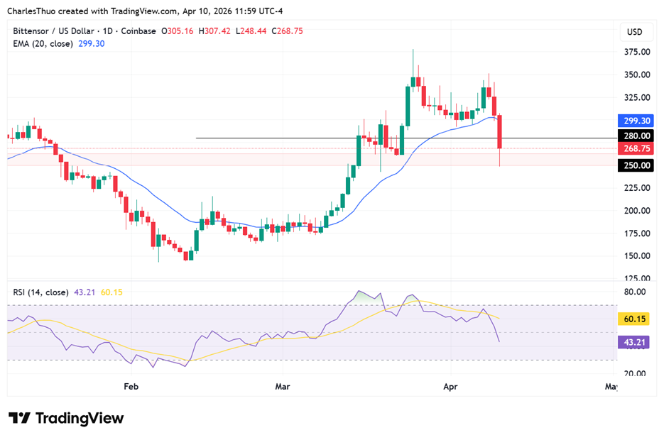 Der wichtigste Bruch ereignete sich, als TAO unter das psychologische $300-Niveau rutschte, das zuvor als kurzfristiger Puffer in Volatilitätsphasen fungiert hatte.