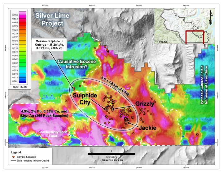 – The Silver Lime Project checks all boxes for CRM exploration criteria including being hosted within a favourable tectonomagmatic terrane (long lived geologic history), and the surface exposure represents the top of the carbonate succession with room to grow, and numerous CRM samples grading >400g/t Ag with associated high-grade Zn, Cu, and Pb.