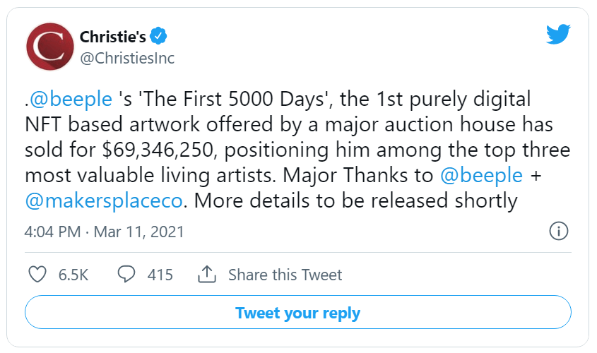 Beeple’s NFT digital art nets £50m at Christie’s auction