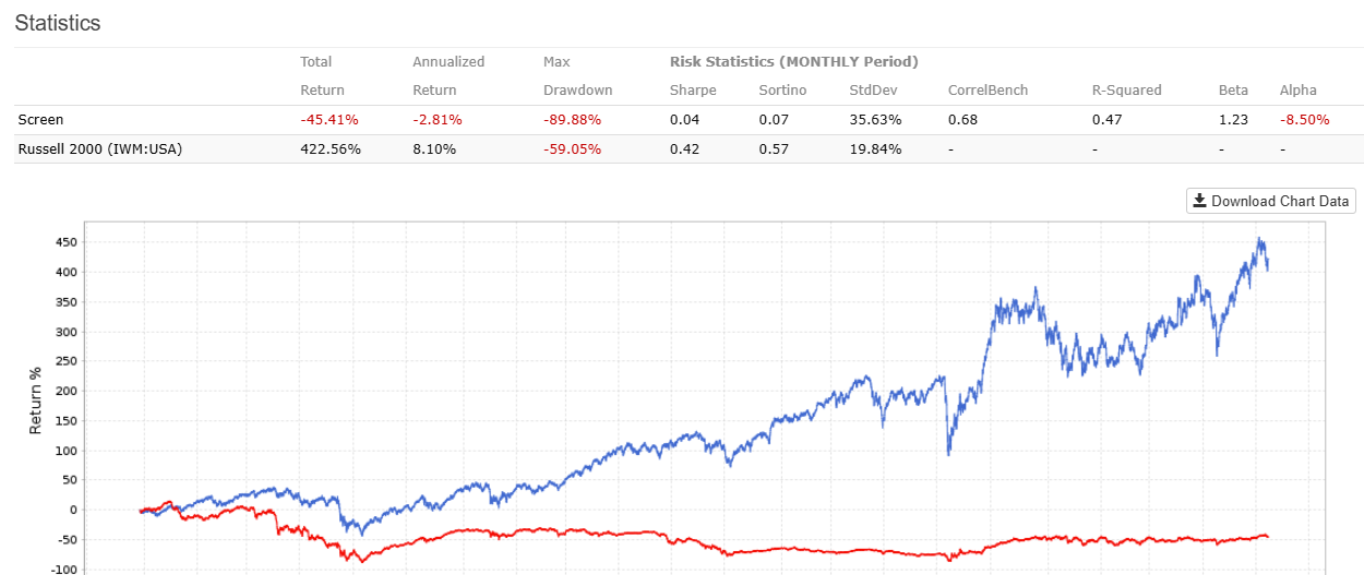 Backtest 4 – Russel 2000, low Dividend Yield