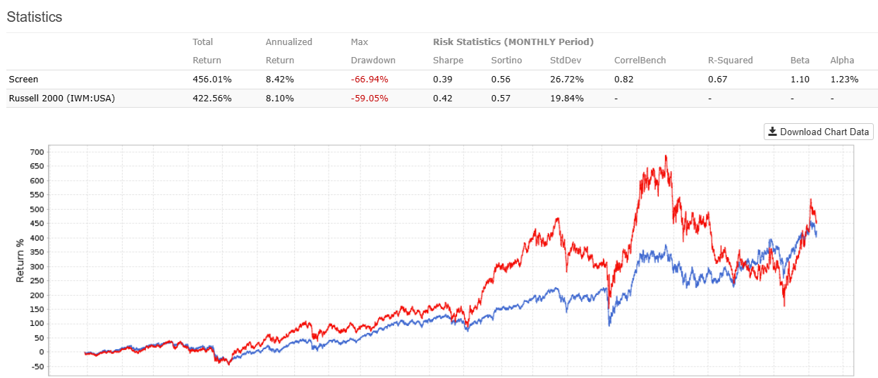 Backtest 3 – Russel 2000, high Dividend Yield