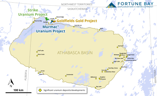 HALIFAX, NS May 24, 2022 – Fortune Bay Corp. (TSXV:FOR, FWB:5QN) (“Fortune Bay” or the “Company”) is pleased to announce commencement of maiden exploration drilling on its 100% owned Strike Uranium Project (“Strike” or the “Project”), located in northern Saskatchewan (see Figure 1 and 2). The Project has potential for high-grade, basement-hosted uranium deposits typical of the Athabasca Basin.