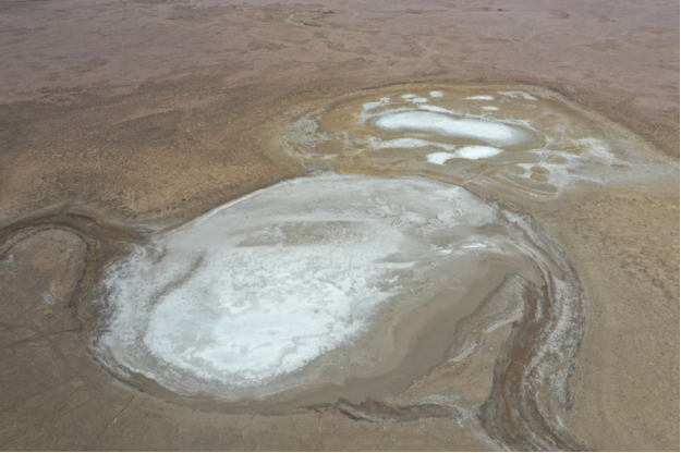 Figure 1. Aerial image of two salt flats in the Urgakh Naran Basin.