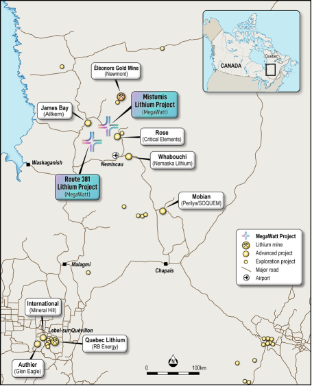 David Thornley-Hall, CEO of Megawatt commented, “With the lithium upcycle showing no signs of slowing up, the Board is keen to rapidly develop the lithium properties in the James Bay region. Megawatt’s technical team is working diligently to roll out a comprehensive exploration campaign across both properties. Moreover, with the recent acquisition of the Mitsumis Lithium Project, Megawatt now has a substantial footprint in a prime area which materially enhances the two properties collective exploration potential.”