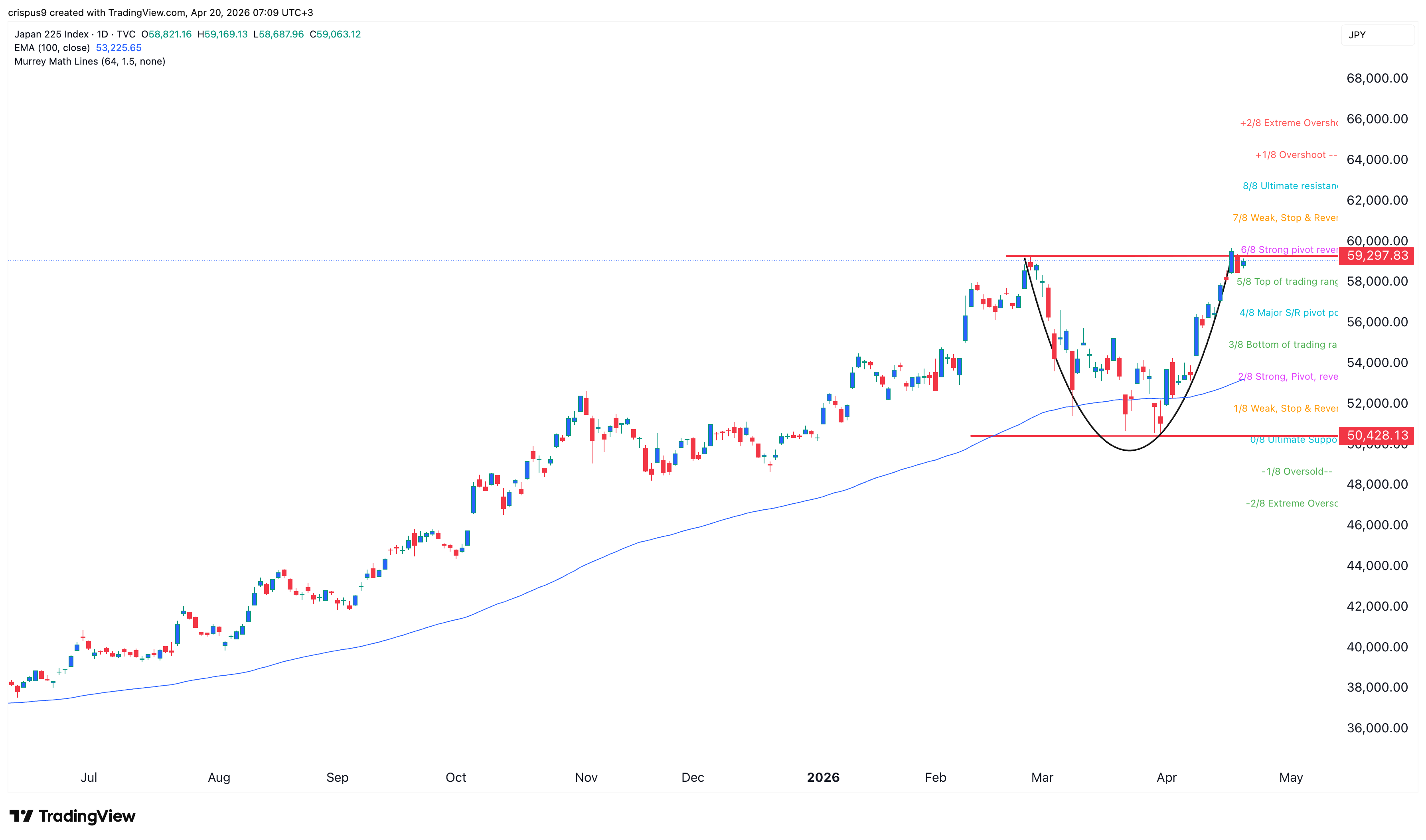 The post Nikkei 225 zeigt Cup-and-Handle-Formation und deutet auf Anstieg auf ¥60,000 hin appeared first on Invezz