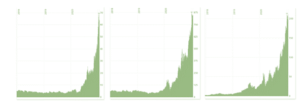 Schauen Sie sich einfach die Kursentwicklung dieser drei beispielhaften Aktien an: