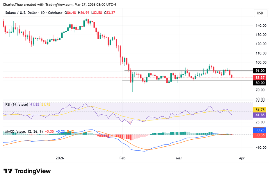 Nachdem Solana (SOL) Anfang März über $91 gehandelt wurde, kam es wiederholt zu Abweisungen in diesem Bereich.