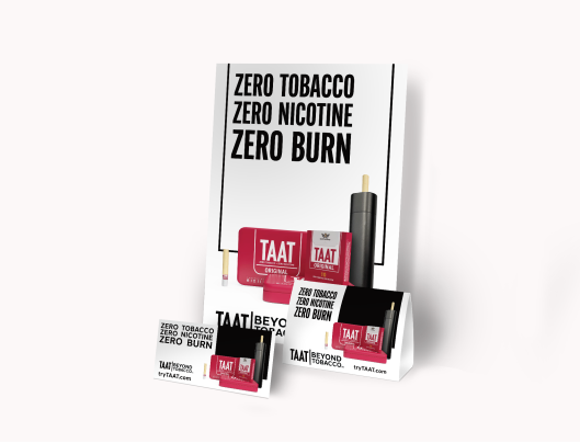 TAAT® plans to launch a heat-not-burn offering in partnership with E1011 Labs which will avail a nicotine-free and tobacco-free option for adult smokers who are switching to this emerging category of alternatives to cigarettes. In May 2022, the Company issued its point-of-sale materials pictured above for countertop placements in retail stores carrying TAAT® heat-not-burn products.